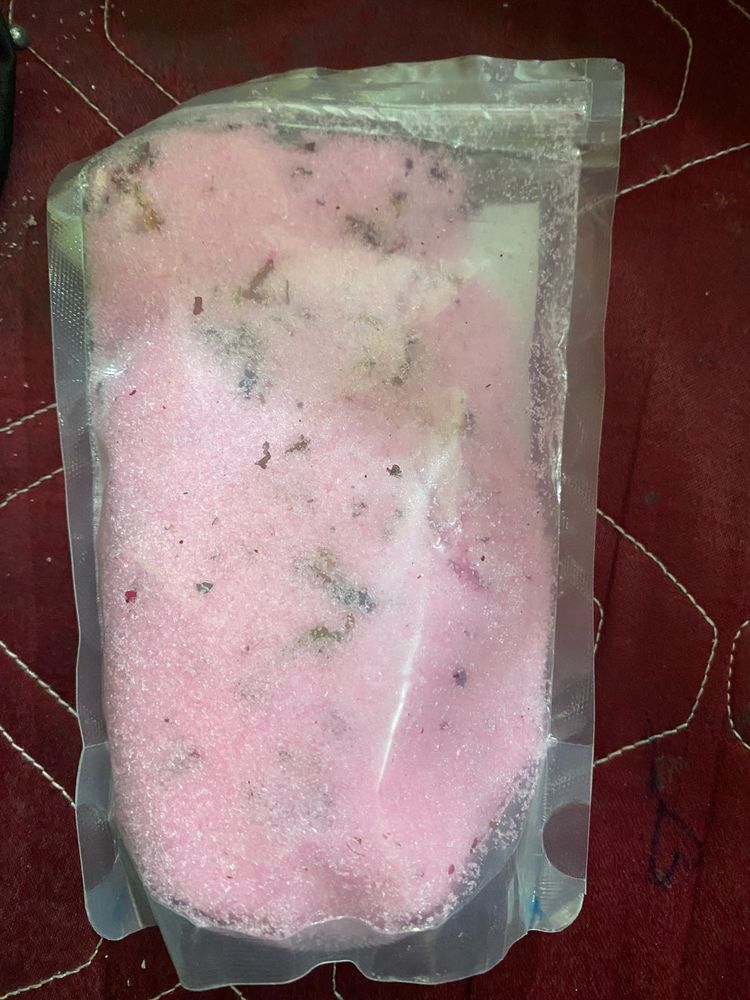 Epsom Salt for pain relief with dry rose petals in it new never used just buy