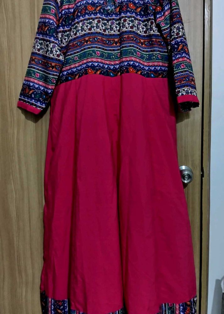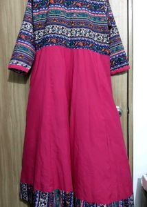 This vibrant kurta features a unique ethnic print on top and bottom, and pink color. Perfect for casual wear. Comfortable and stylish!