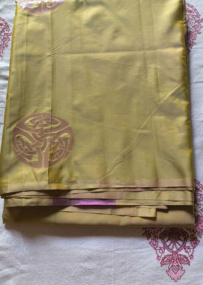 soft kaanjivaram saree with colour combination of olive and light lavender color. Beautiful combination....