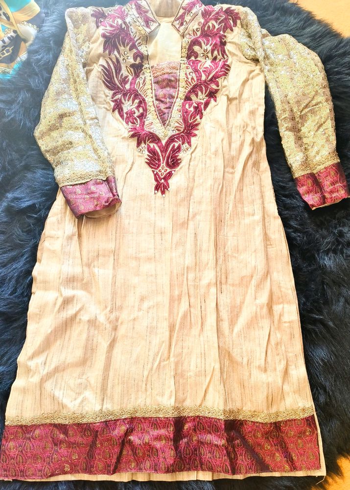 Ethnic wear dress for festivals and weddings with thread work embroidery on front neck and back. Sleeves full embellished.