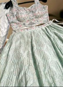 This stunning, heavily flared lehenga with a stitched blouse and full-length dupatta is a show-stopping outfit perfect for various special occasions: