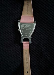 Stylish Fastrack ladies watch featuring a unique triangular face and a fashionable pink leather strap. This watch is perfect for adding a touch of elegance to any outfit. It's in great condition and ready for a new owner.