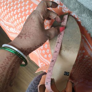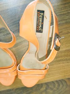 pretty peach 🍑 colour shiny smooth leather pencil heels with pvc heel button and leather soal...buckle to adjust size and no damages r flaws...it's size 39 mentioned ..tape measure u cn see on pic