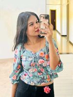 This stylish navy blue crop top features a charming floral pattern and a flattering wrap tie design. Perfect for a casual day out or dressing up for a night with friends. The lightweight fabric ensures comfort, while the short sleeves keep you cool and stylish.