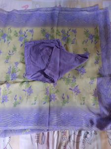 Vintage-inspired dress set featuring a delicate floral print in shades of yellow and lavender. only saree and blouse . Perfect for adding a touch of bohemian flair to your wardrobe. Lightweight and comfortable fabric. Excellent condition.