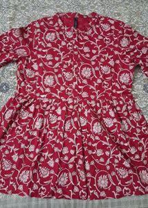 Short maroon cotton kurti with small elegant design, breathable fabric, and comfy fit — ideal for everyday casual wear.