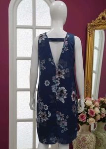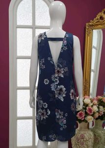 Navy blue sleeveless dress with a floral pattern. This dress is perfect for a casual or semi-formal occasion. It's in excellent condition and ready for a new home.