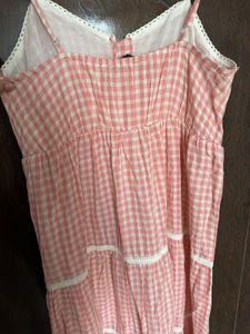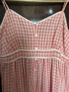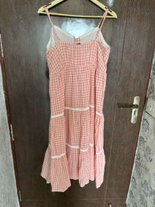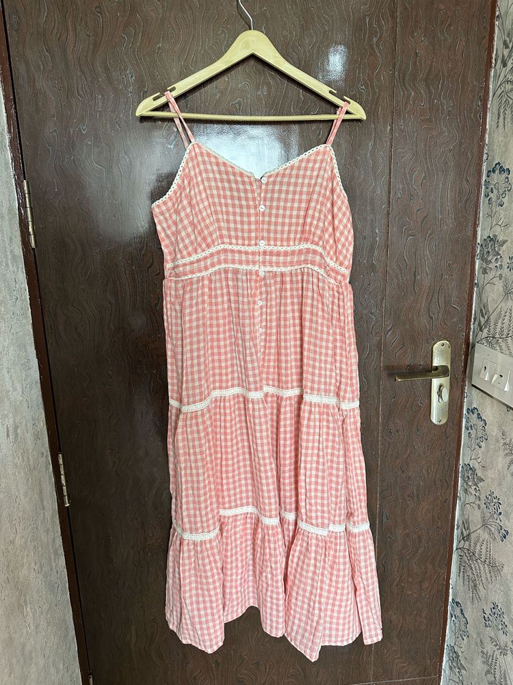 size XL Cute pink and white gingham tiered dress with delicate lace trim. Perfect for a casual day out or a picnic. Soft and comfortable fabric. Embrace a timeless look with this charming piece. Dress it up or down for any occasion. Add a touch of vintage-inspired style to your wardrobe.