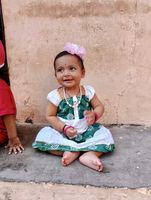 Beautiful Pattu Pavadai set for girls. Perfect for festive occasions and cultural events. Features vibrant colors and intricate embroidery. Comfortable and stylish for your little one. Used dress so back hook is not proper otherwise dress in perfect condition. Kids upto 3 yrs can wear.
