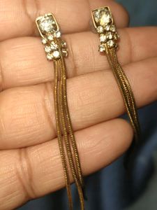 it's a beautiful gold chain earrings with stone..goes well with all outfits..no damages...but shine is bit added cn see in the pics ...but still looks very attractive
