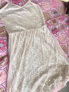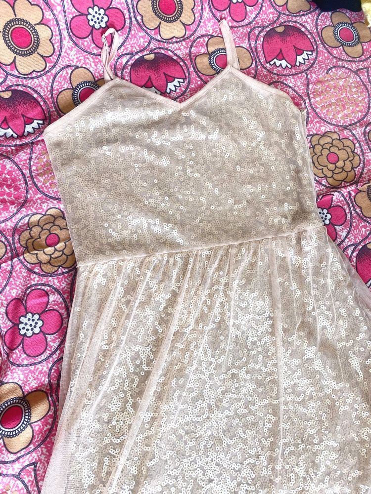 Dress material is sequin layered with net, has a soft lining inside. Gives off a simple and yet chic look. falls right above the knees and it's perfect for any party or club day ^_^ it can be paired with any leather jacket.