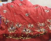 Beautiful saree with intricate embellishments. Perfect for festive occasions or special events. The vibrant colors and detailed work make it a unique addition to your wardrobe. Add a touch of elegance to your look with this stunning piece. It's in good condition and ready to be worn and enjoyed.