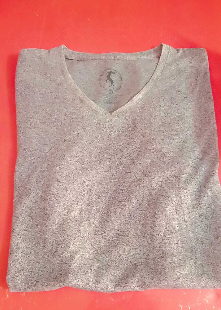Classic gray V-neck t-shirt. Soft and comfortable, perfect for everyday wear or layering. Versatile and easy to style.