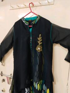 green and black colour kurti with jacket pattern beautiful flower design with beats