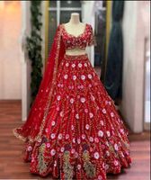 Elegant green lehenga choli set with intricate bandhani print and golden border detailing. Perfect for festive occasions and weddings. This outfit is crafted with high-quality fabric for comfortable wear and a stunning look. The vibrant color and traditional design make it a timeless addition to your wardrobe. Complete your ethnic collection with this beautiful ensemble.