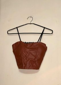Ribbed Wine Red Cross-Back Crop Top – Size XS/S
