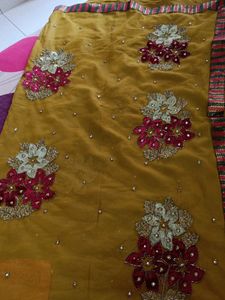 half half net saree with beautiful blouse .. some brown stians on saree . I added picture