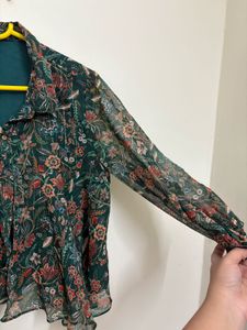 Beautiful green floral print blouse in a sheer fabric.