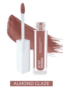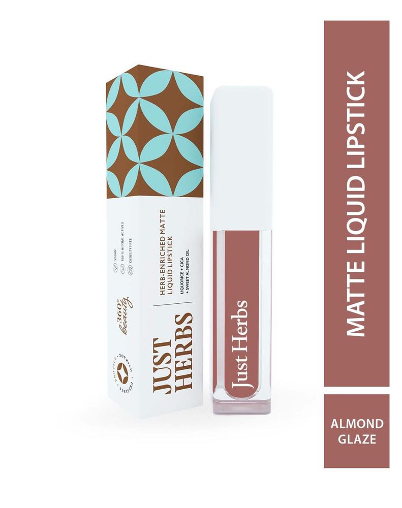 Just Herbs Herb-Enriched Matte Liquid Lipstick in Almond Glaze. Experience rich color and a comfortable matte finish with this herb-infused formula. Perfect for everyday wear or special occasions. This lipstick provides long-lasting color.