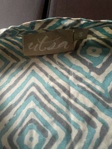 add this white and turquoise colour modern print cotton Kurtha to your office or casual wardrobe at an affordable price. the Kurtha will be sent to you in a perfectly ironed condition and guaranteed quality product