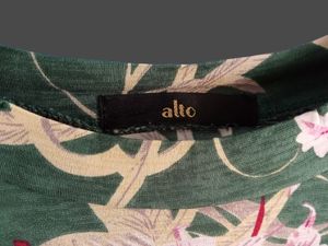 Almost new flawless beautiful without sleeves floral top Alto brand not sure about the fabric but its smooth and breathable.