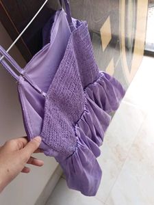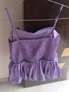 Elegant lavender top, perfect for parties or special occasions. Features a unique design and comfortable fit. Dress it up or down for versatile styling. Add a touch of sophistication to your wardrobe! Great for layering or wearing on its own. This top is sure to turn heads!
