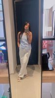 Comfortable and stylish light wash denim joggers with a drawstring waist. Perfect for casual wear. Dress them up or down, a versatile addition to your wardrobe. These joggers are in good condition and ready for a new home.