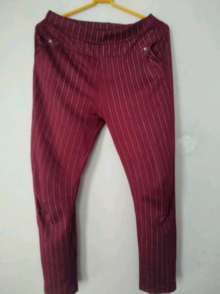 Stylish maroon pants with a subtle pinstripe design. Comfortable and versatile, perfect for work or casual wear. In great condition.