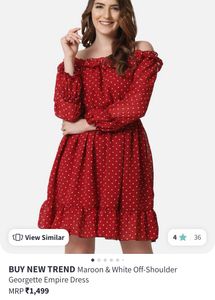 • Maroon and white polka dot print empire dress