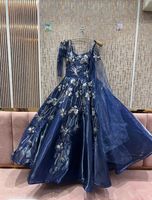 Elegant Black Ball Gown With Dupatta Beads Stones
