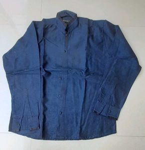 This is a great looking navy blue, button-down shirt. It has a decorative collar and a pocket on the front. It is in excellent condition and ready to wear. Great for casual or slightly dressy occasions.