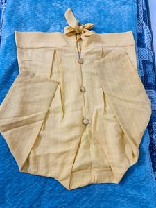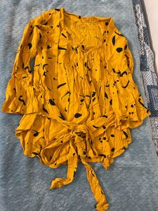 Let me know in the comments which one u want. Stylish mustard-colored top with unique detailing. Perfect for casual outings or dressing up. Comfortable and trendy, this top is a versatile addition to your wardrobe. Add a pop of color to your look!