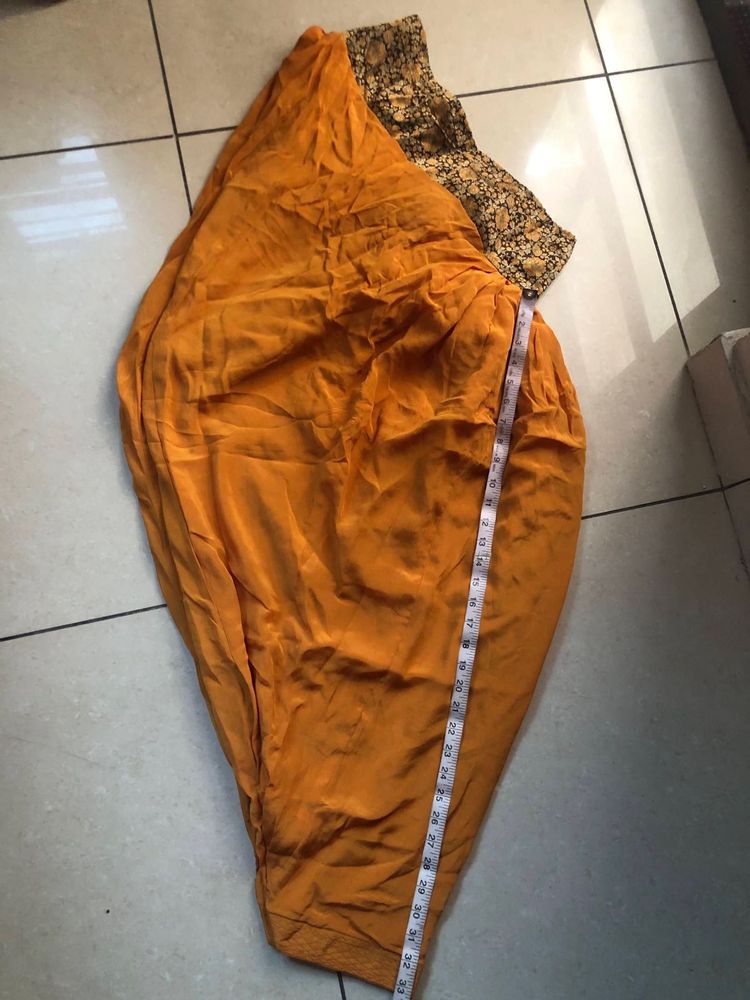 Mustard yellow coloured garment. Features a decorated trim. Offers a casual look. The measurements can be seen in the images, offering more insight. It would be nice to wear these around the house on a lazy Sunday morning, relaxing and getting comfy. defects as shown in pics