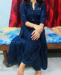 Elegant navy blue kurta set featuring intricate embroidery and a modern silhouette. Perfect for festive occasions or adding a touch of sophistication to your everyday style. Comfortable and stylish, this set is sure to turn heads. It is in great condition.