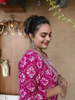 ★ Fabric: Cotton ★ Sleeve Length: Three-Quarter Sleeves ★Pattern: Printed Net Quantity (N): 1 ★Sizes: M (Bust Size: 36 in, Length Size: 28 in The three-quarter sleeves add a touch of sophistication, the round neck not only lends a modern edge but also accentuates your collarbone, adding a subtle allure to your overall appearance. This Tunic offers a luxurious touch and enhanced durability. The fabric drapes beautifully, providing a soft and silky feel against the skin. Country of Origin: India
