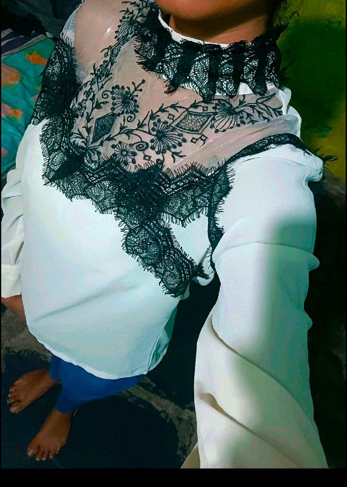 worn only for pic in this is very beautiful and stylish top but transparent from front neckline but in my house not allowed so giving away