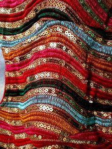 New never worn Sequin Padded Blouse. Very good material. Beautiful Decorative Sequin Work done. Unused . Never worn before. Sleeves attached inside. Colour and Design : Just as shown. Fabric is not cotton. But has a soft blend with cotton . No flaws. Absolutely new.
