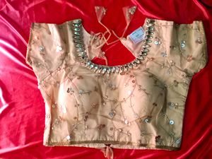 Stunning orange sari blouse with intricate gold embroidery and embellishments. Perfect for traditional Indian attire or a unique statement piece. Excellent condition. Add this beautiful and vibrant blouse to your wardrobe! The embroidery features floral and swirling designs. It is perfect for wedding or special occasion.