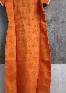 This vibrant orange kurta features a unique print. Perfect for casual wear or dressing up.