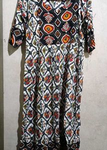 This unique A-line dress features an all-over pattern. Perfect for adding a pop of color and visual interest to your wardrobe. Comfortable and easy to wear. Great for casual outings. It pairs well with sandals or sneakers. The fabric is soft and breathable, making it ideal for warmer weather. Good condition. Grab it before it's gone!