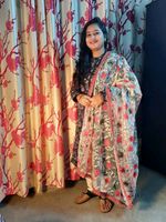 Elegant kurti featuring a unique blue and white pattern. Perfect for casual outings or a relaxed evening. Lightweight and comfortable, this dress is a stylish addition to any wardrobe. Dress it up with white leggings , heels or down with sandals. It is in medium size
