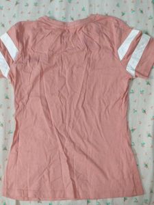 Cute peach-colored t-shirt with white stripes on the sleeves. Perfect for casual wear or layering. In great condition! Grab it now before you lose.