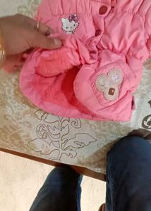 Adorable pink puffer jacket featuring a 'Charming Kitty' design. Size is for 3-6 months. Lightly padded for warmth, perfect for cooler weather. Has a cute bear design on one of the pockets. Button closure. warm and stylish for the little girl. Hardly worn twice, is as good as new.