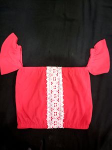 pink crop top for girls, its perfect outfit for outing its frabric it's grt ,i have wear it only once and now wanted to sell it ,no stain on it. hope u will like it :)
