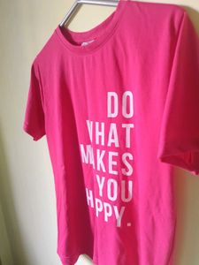 Bright pink T-shirt with a motivational quote. Perfect for casual wear or adding a pop of color to your outfit. Comfortable and stylish, this tee is sure to spread good vibes wherever you go. Pair it with jeans or shorts for a relaxed look.