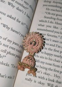 These unique pink Jhumka earrings will add a touch of cultural charm to any outfit. The intricate design features a peacock motif. Perfect for special occasions or adding a bit of flair to your everyday look!