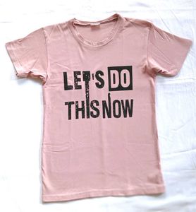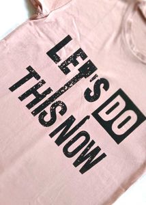 This is a playful Pink Graphic T-Shirt in a soft, light pink hue. It features a bold, black graphic print on the front that reads, "LET'S DO THIS NOW" in a stylized, block font. The shirt has a classic crew neck and short sleeves, cut in a standard fit, making it a comfortable and fun everyday casual tee.