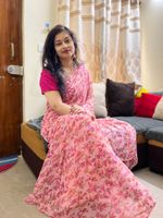 Myaza Women Peach Digital Floral Printed Kurta Dress with Beads Stone Work on Neck