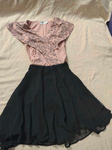 guys it's a lovely light pink and black shirt dress I wore it once on my birthday and it's amazing (but it's short) if you love short mini dress just go for it guys . size is - Xs (I have stiched it coz it was loose for me so xs people can wear it easily ) just offer your price and it's totally yours.