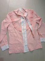 Elegant pink blouse with unique ruffle detailing. Perfect for adding a touch of sophistication to any outfit. Dress it up for a special occasion or wear it casually for a chic everyday look. This blouse is sure to turn heads and make you feel fabulous.